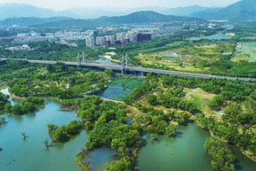 本案位于敦煌市中心以南,党河以东1000m左右,文化产业园区北侧。飞天公园规划设计面积28.07公顷。飞天公园水系属于《敦煌城市水系景观系统规划》中新增景观水系的重要节点,同时也是“三溪五湖百塘”园林景观工程之一,面积5.9公顷。飞天公园水系设计充分利用旧兰亭砖厂场址遗留的深坑,并结合飞天形象的曲线对驳岸形态进行适当优化,形成蜿蜒曲折,有收有放的自然水系景观。